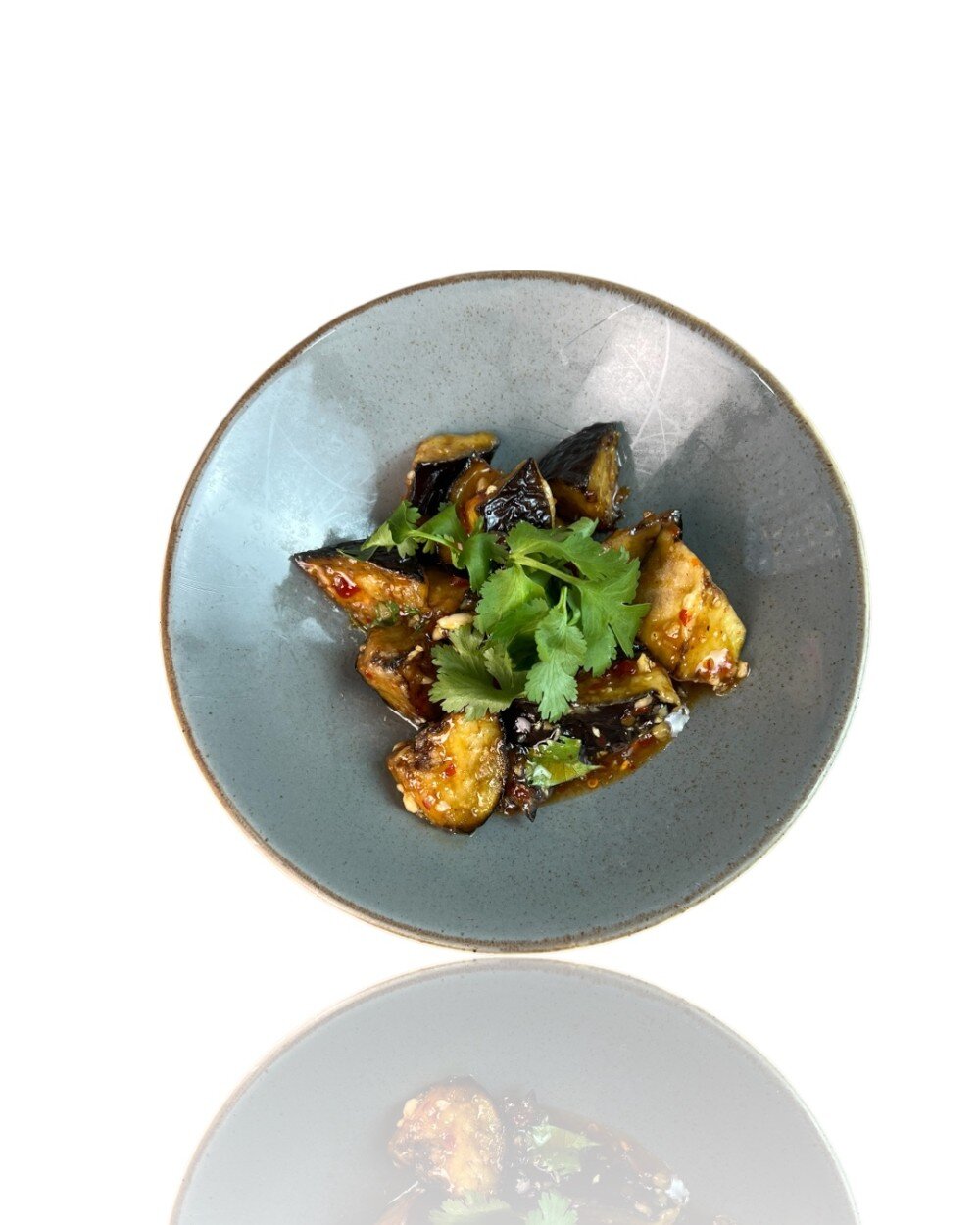 Баклажаны в кляре запралвенные сладким соусом чили и кинзой