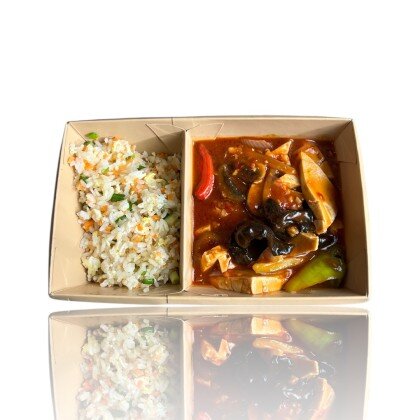 Нежное куриное филе с луком и полуострым перцем, жареное на сильном огне до идеальной сочности.