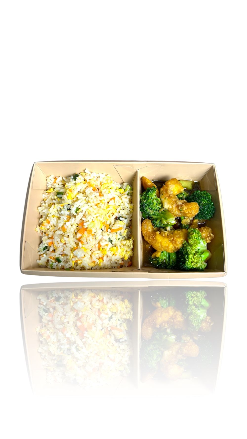 Креветки (6–8 шт.) и брокколи обжаривают в ароматном чесночном соусе.