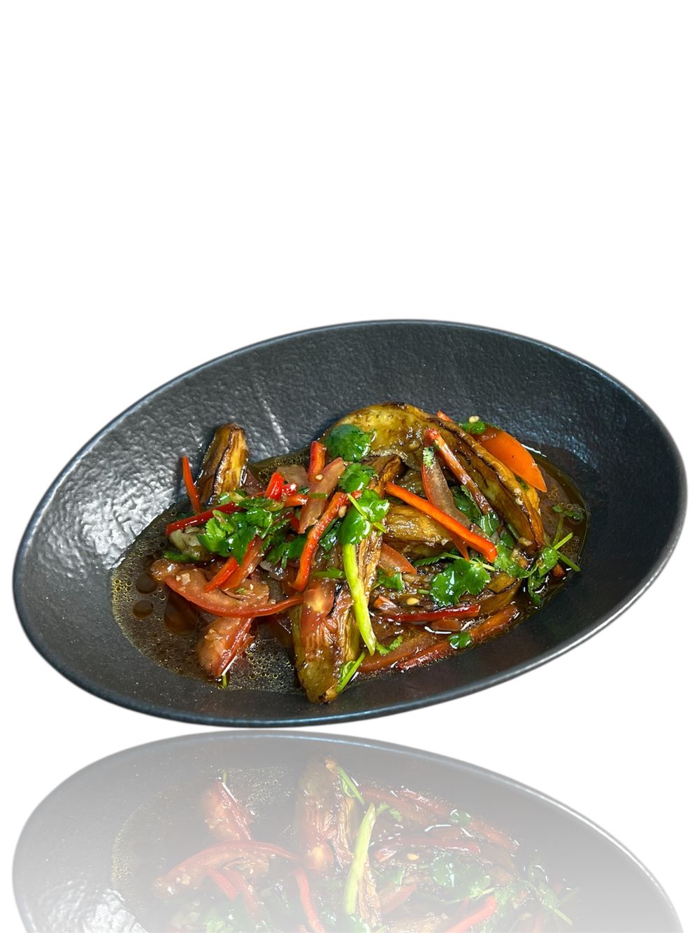 Сочные баклажаны, обжаренные с овощами в ароматном соусе.