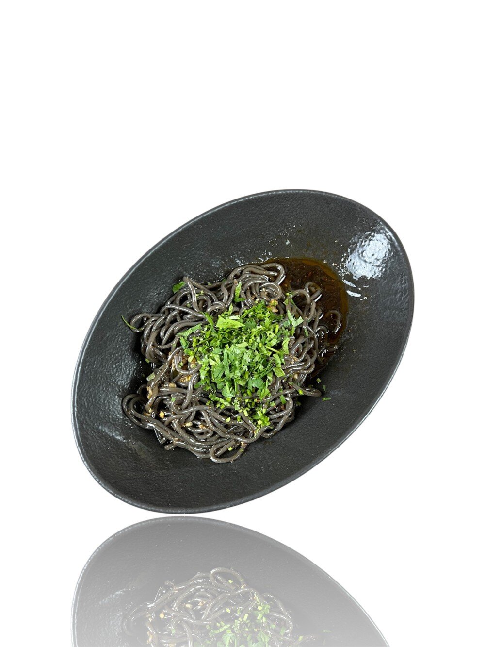Отваренная черная фунчеза, приправленная насыщенным кисло-острым соусом - пикантно, сочно, необычно.